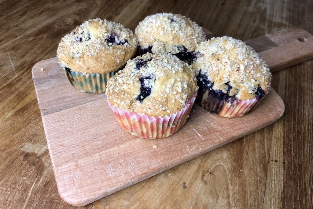 Recept voor 12 zoete muffins. Ingrediënten: Muffins • 440 gr bloem • 2 tl bakpoeder • 2 eieren • 240 ml melk • 200 gr blauwe bessen • 200 gr bruine basterdsuiker • 55 gr ongezouten roomboter • 1 tl vanille extract • ½ tl zout • 1 tl speculaaskruiden Topping •…